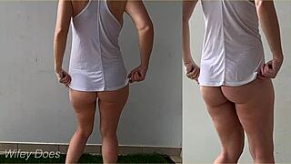 Hey, wanna see my wet t-shirt dripping with baby oil? I’m flashing my curvy ass and natural tits just for fun!