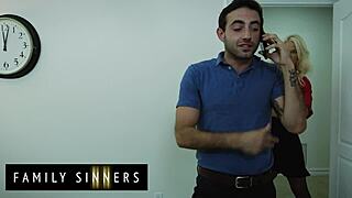 Family sinners - smoking hot stepmom shows real tits and lets stepson fuck her shaved pussy harder than dad