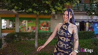 This curvy brunette milf mae joins the club in a public outdoor casting, flashing her big ass before deepthroat quickie with young spanish dude.