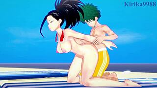 Himiko Toga, Momo Yaoyorozu, and Izuku Midoriya in wild My Hero Academia hentai sex