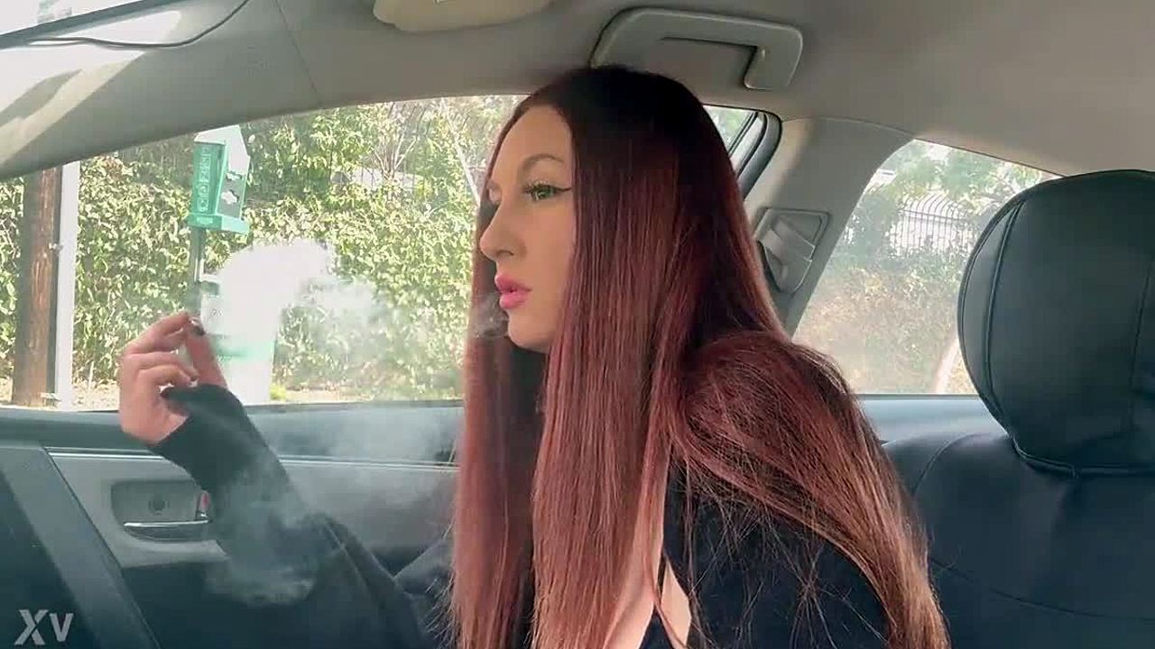 Italian milf Artemisia Love lights up cigarette outdoors while exposing big horny tits