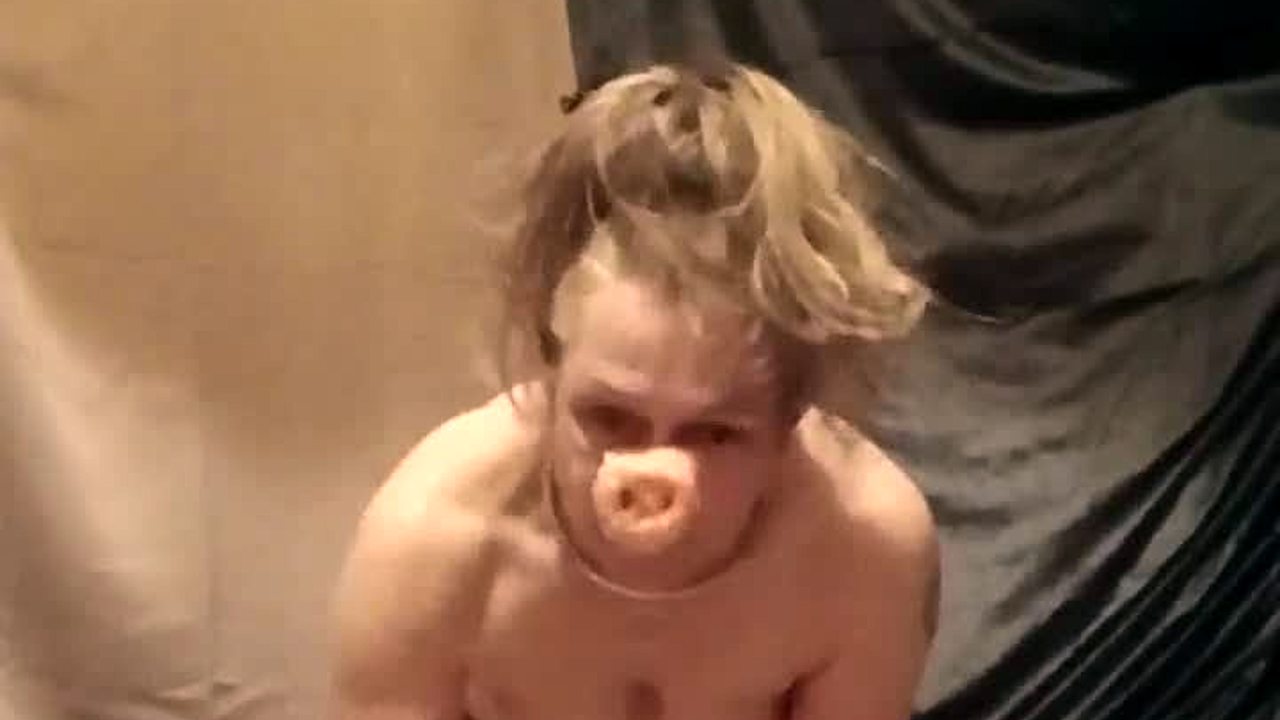 French housewife bound and humiliated in intense ponygirl solo session outdoors.