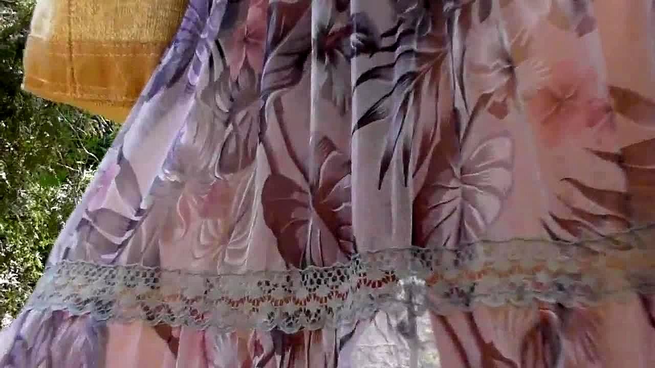 Dirty bbw milf with big natural tits and hairy pussy flashes in pantyhose outdoors as a lustful step mother in wet dress roleplay