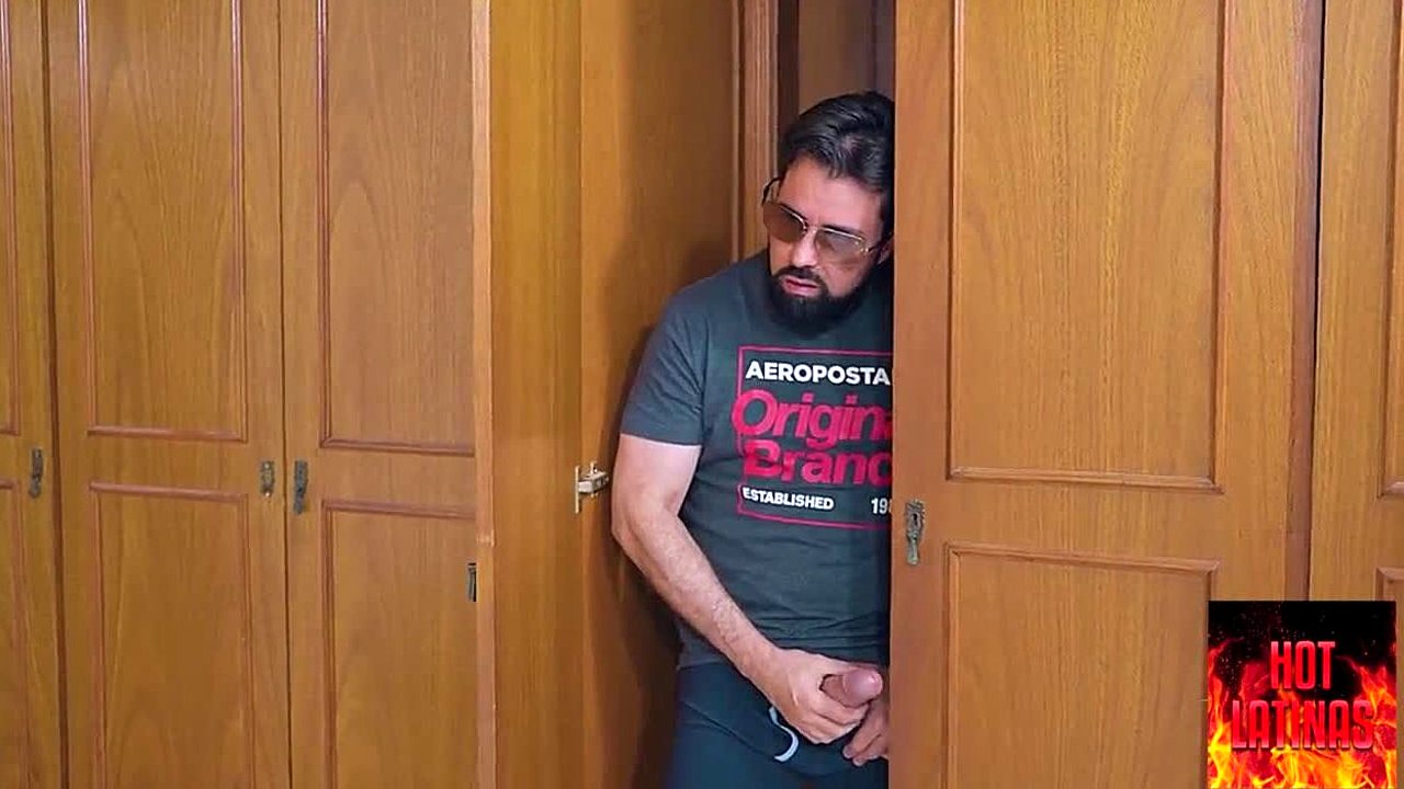 I put on erotic lingerie and flash myself so the maid's stepson can masturbate and cum in front of me!