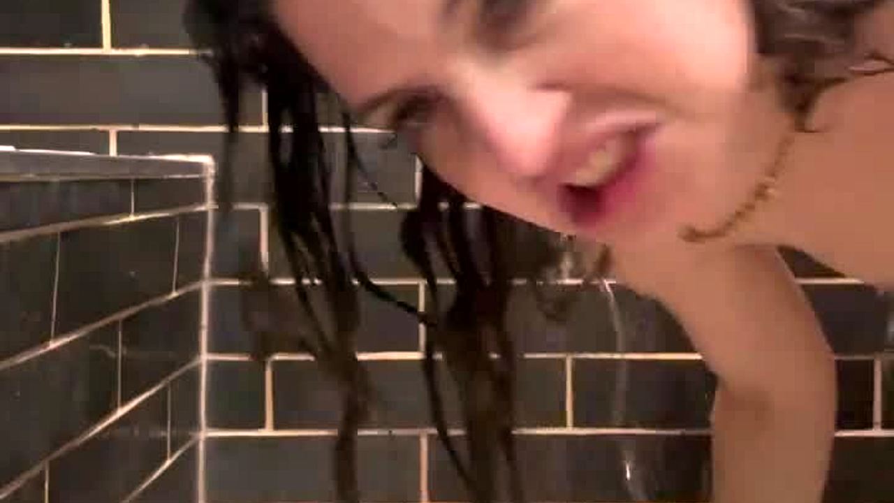 brunette in stockings experiences anal orgasm while masturbating juicy ass with wide rubber dick on toilet