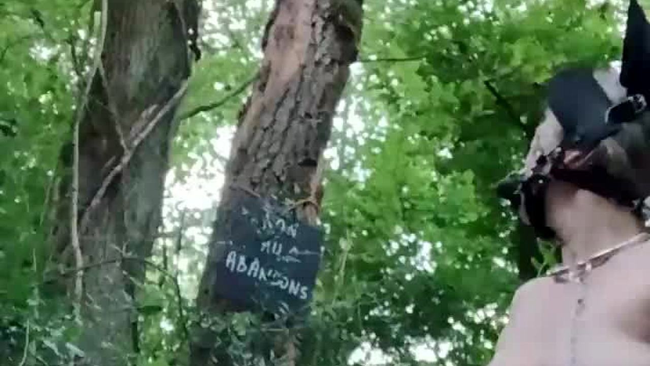 एनल स्लट फॉरेस्ट में गैपिंग डिस्ट्रक्शन के बाद पेशाब करती है