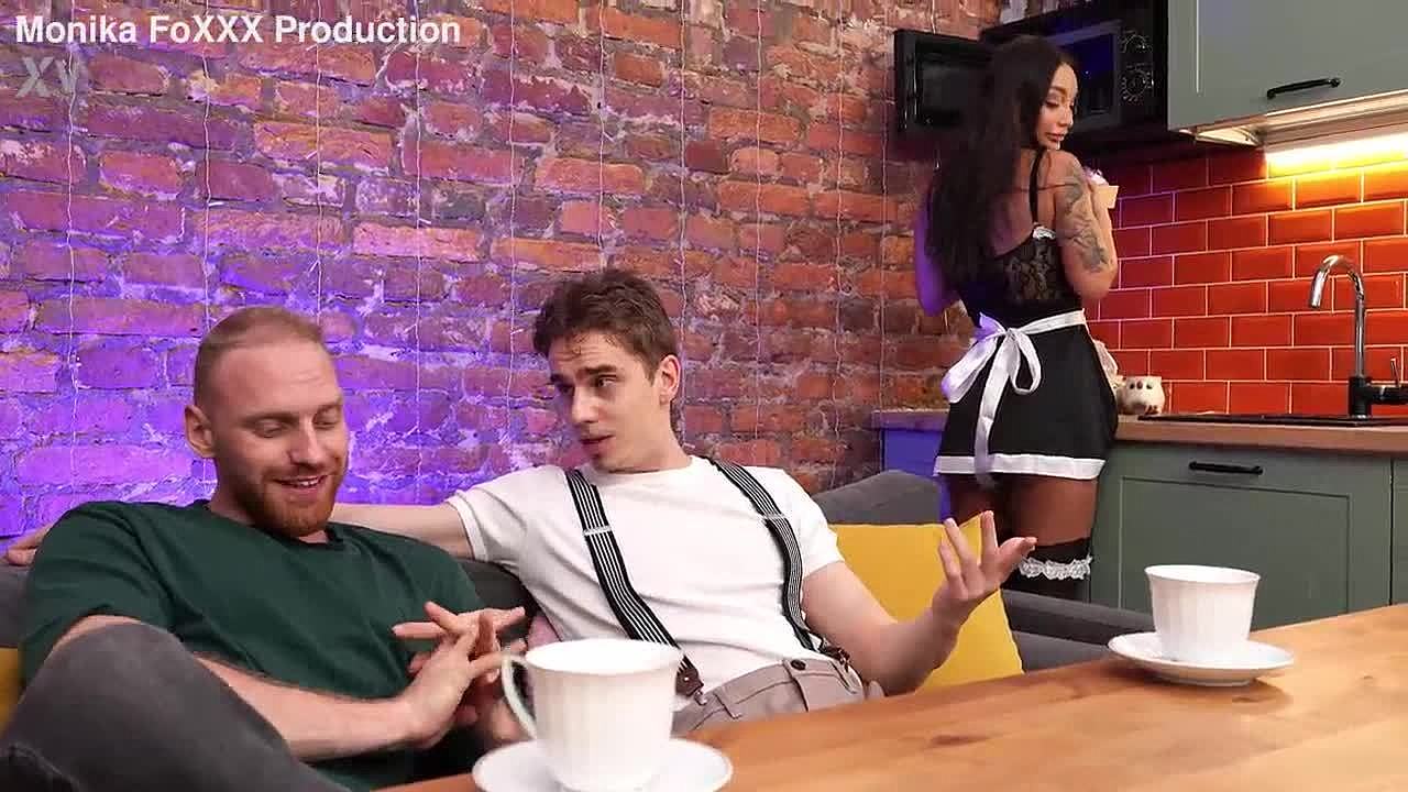 Man, this French slut in a tight satin dress and thong gets wild with rimming and doggy!