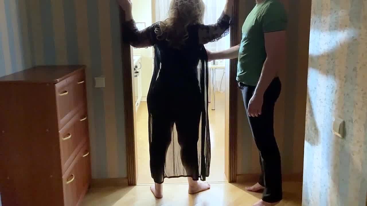 Maid uses mouth to clean dirty cock and balls. Does she swallow every drop in homemade video?