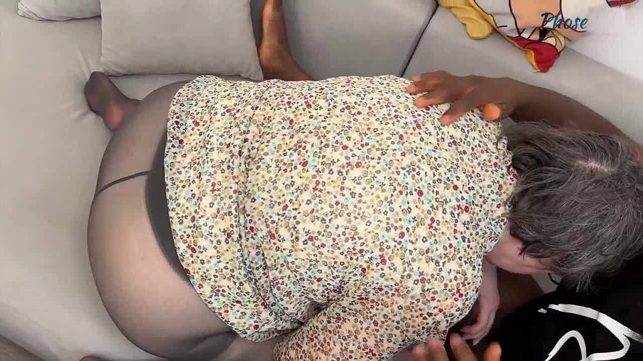 Old Redhead Mature Granny Bitch With Saggy Tits And Hairy Pussy Seduces To First Interracial BBC Sex In Fishnets