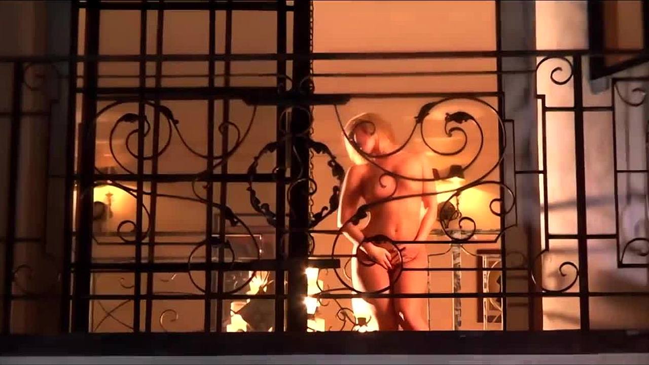 Blonde Slut Subtly Masturbates on Bed with Big Tits and Shaved Pussy