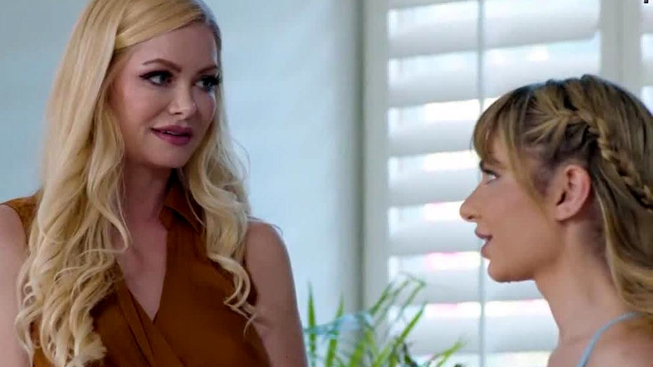 Nudist stepdaughter Brooklyn Gray convinces stepmom Serene Siren to strip. They get horny and fuck hard!