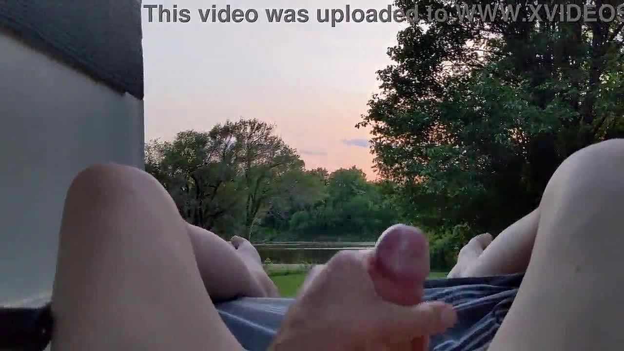 She rims his big cock in pov with handjob until cumshot covers her tanned body