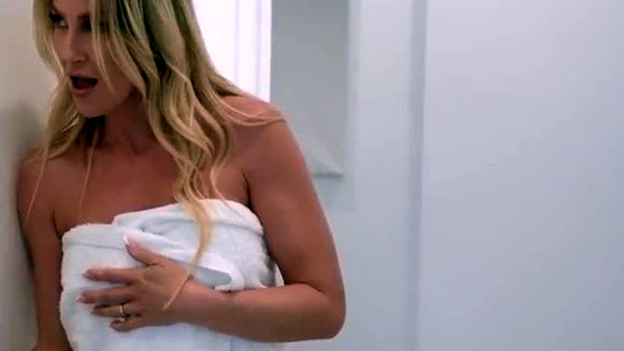 Hey, want to watch blonde milf Julia Ann tease in lingerie with big tits and wet pussy in the shower?