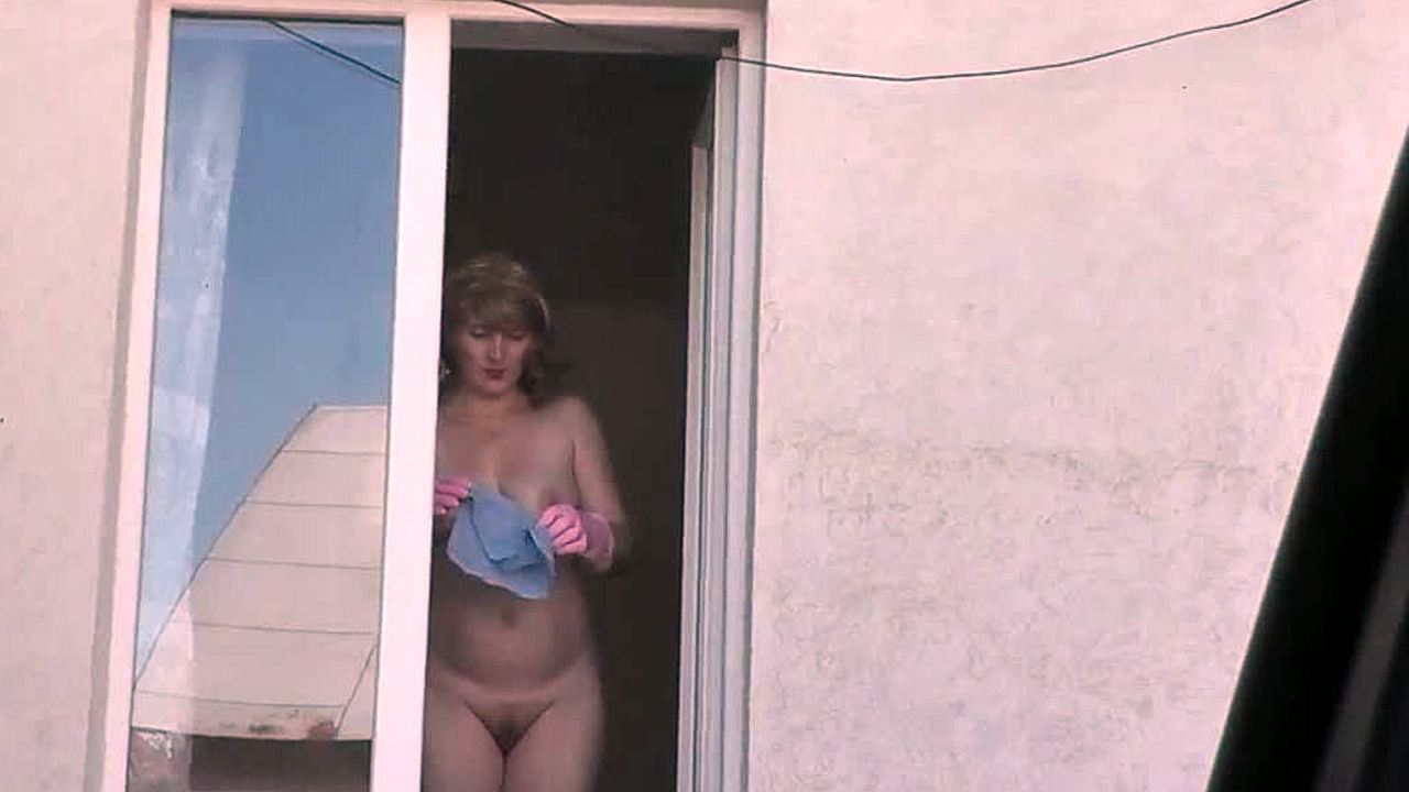 Sexy blonde milf without panties in kitchen masturbates tits nipples wet pussy to strong orgasm and squirt