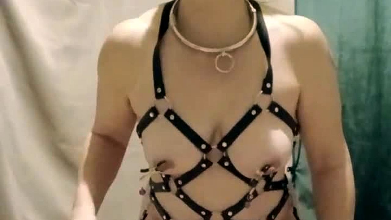 french milf maid in bondage hints at outdoor public blowjob and cum in mouth