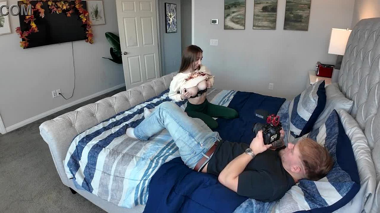 First masturbation turns into hard fuck with stepson cumming inside me as curvy blonde wife in lingerie