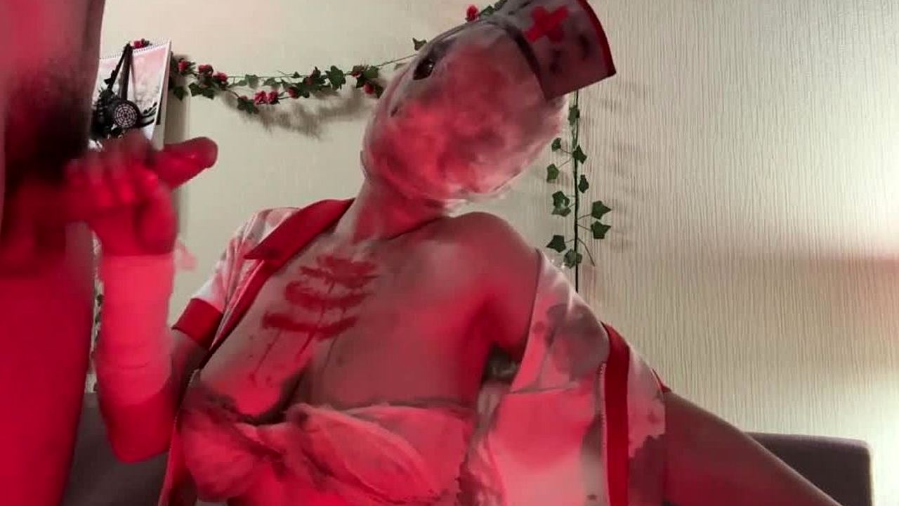Japanese teen 18+ nurse hospital work में rough Halloween roleplay sex के लिए seduce करती है