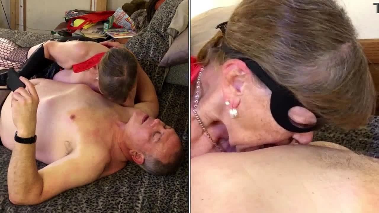 Granny sucks cock in pov.